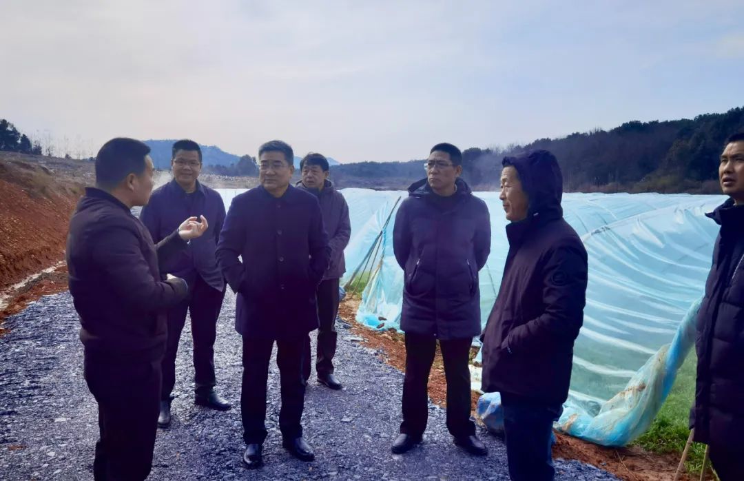 1月24日上午,党委书记明道树、校长方长风、校党委副书记潘龙星、副校长徐宏斌、行办主任梁梁一行到我校定点帮扶村七里岗指导乡村振兴工作。兴国镇党委书记吴坤、七里岗村“两委”干部及我校驻村工作队全体成员陪同并开展座谈交流。