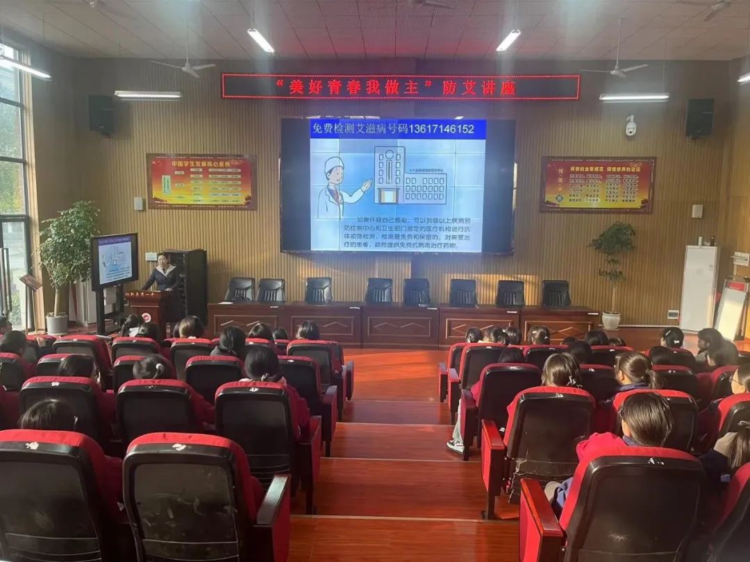 为进一步加强学校艾滋病防控工作,落实防艾宣传教育,提高防艾知识知晓率,增强师生防艾意识,保护师生生命健康安全,2024年3月7日下午16:40-17:20,我校联合县疾控中心在明德楼报告厅开展了“美好青春我做主”防艾讲座。县疾控中心主任蔡柳枝主讲,德育室主任肖鹏,副主任秦青山及高二学生代表共两百余人参加,活动由德育室胡家亮老师主持。