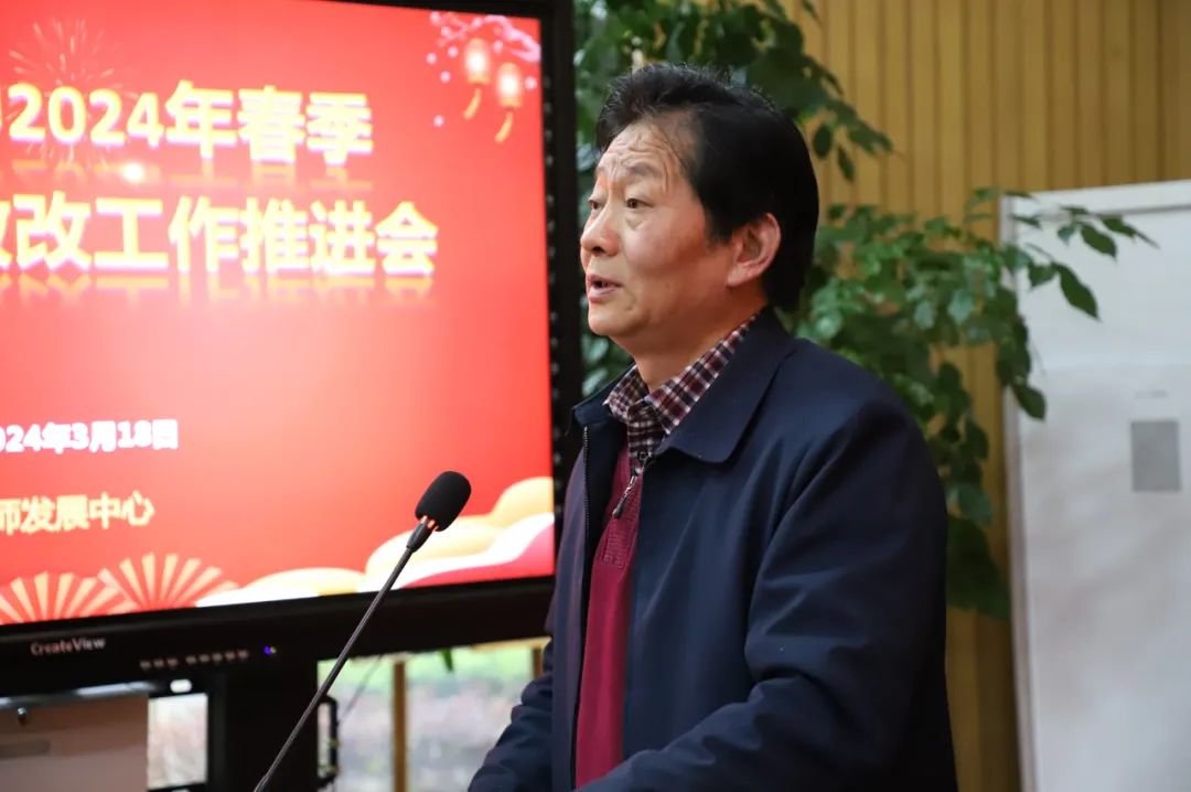 最后,方长风校长发表讲话,全面布置了本学期工作。方校长表示,本次会议是为了进一步落实春季开学工作的会议精神,推进教学工作走真走实,抓细抓实,促进教学质量再提升,实现政府工作报告中所指示的扩优提质。为此,他提了四点要求:一、坚持立德树人,以身示范,争做学生的好先生、大先生;二、坚持以生为本,提高课堂效率,提升教学质量;三、坚持三个引领,形成良性循环,实现提质增效;四、坚持抓实常规,营造育人氛围,实现整体提升。这些要求不仅为学校的发展指明了方向,也为每一位教师提供了行动指南。