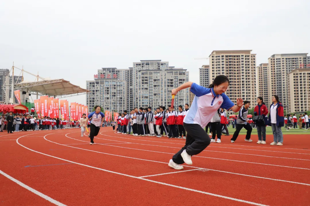 从百米短跑的电光火石之间,到长跑比赛的耐力与意志的较量;从跳远选手们的一跃定乾坤,到铅球赛场上力量与技巧的完美结合,每一项比赛都充满了激情与挑战。特别是在接力赛中,各班级队伍的默契配合和顽强拼搏,赢得了现场观众的阵阵掌声。此外,增设的班主任们为本班抢零食的趣味运动,更是让运动会增添了无限欢乐与活力。