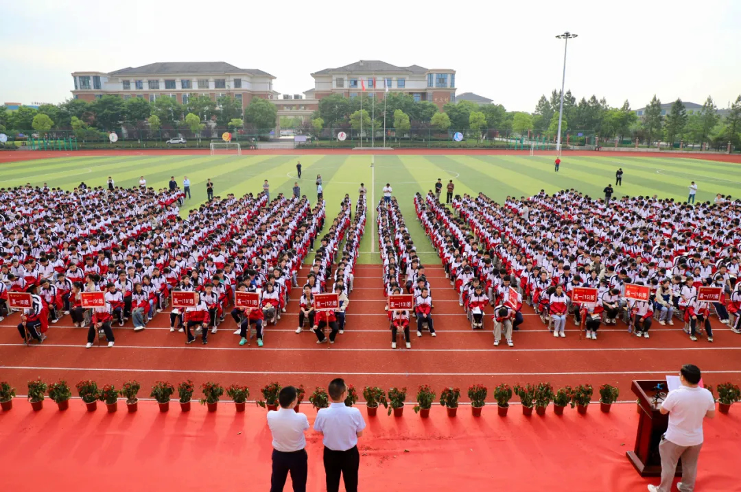 名师引领,助力学生进步。同学们能取得优异的成绩,既离不开各科老师的辛勤付出,也离不开班主任老师的陪伴呵护,老师们积极认真备课,提高教学技能。高一年级党支部书记汪洋通报了此次联考对标兄弟学校取得优异成绩的优秀备课组、优秀班级表扬名单,方长风校长和江章令副校长为获得表彰的备课组和班级颁奖并表示祝贺。