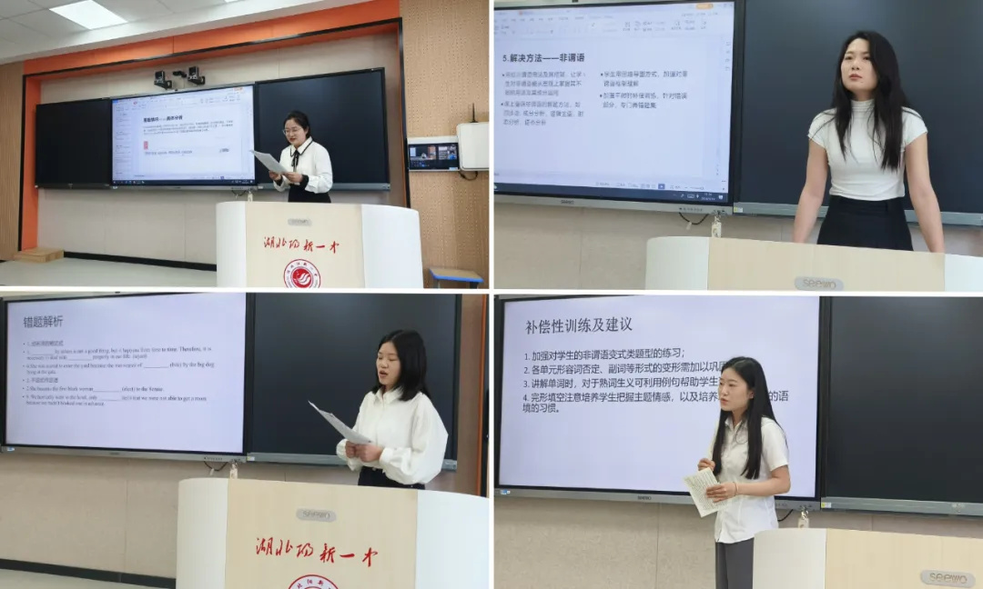 其后,鲍淑荃老师就四位老师的试卷评析过程进行了评议,她以积极鼓励的态度,对年轻老师的努力和进步给予认可,年轻人的敢做敢拼,中流砥柱的拉帮传带给英语组营造了一个积极向上的学习氛围。同时她也以从教近四十年的经验补充了试卷中的重点内容和被忽略的重难点,更全面而细致地分析教师的教学策略、学生的学习反应以及课堂的实际成效,旨在促进教学质量和学生学习效果的持续提升。