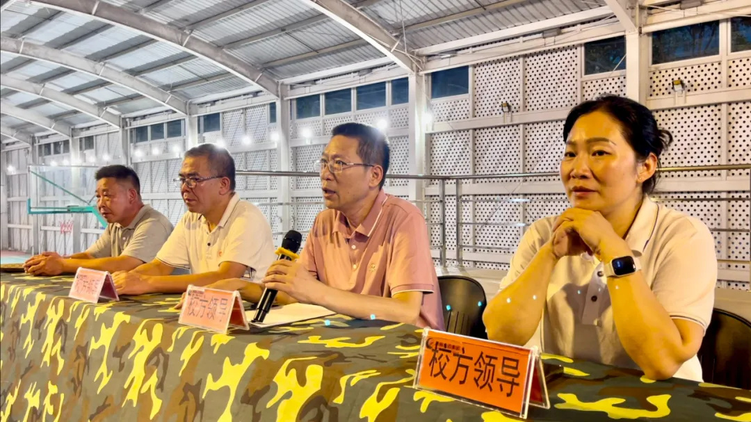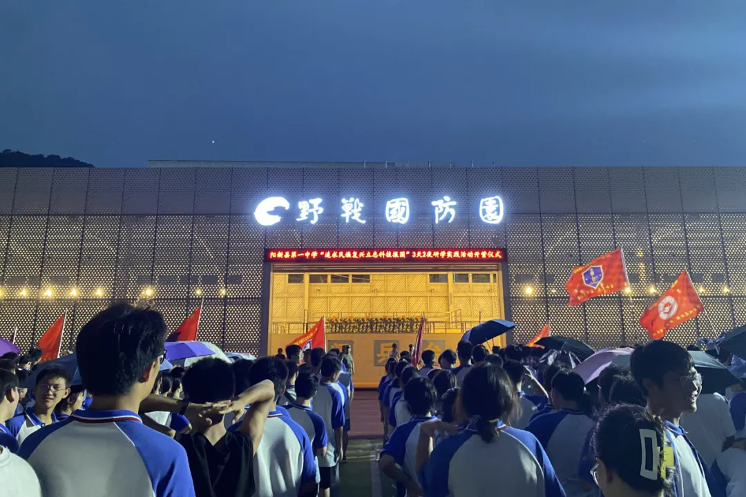 16日晚,本次实践活动的开营仪式在武汉野战国防园举行。阳新一中校长方长风、副校长徐宏斌、副校长徐美姝、家委会会长张军、武汉野战国防园领导厚博和周琰,以及高二年级全体班主任、部分教师和家委们共同参加了开营仪式。