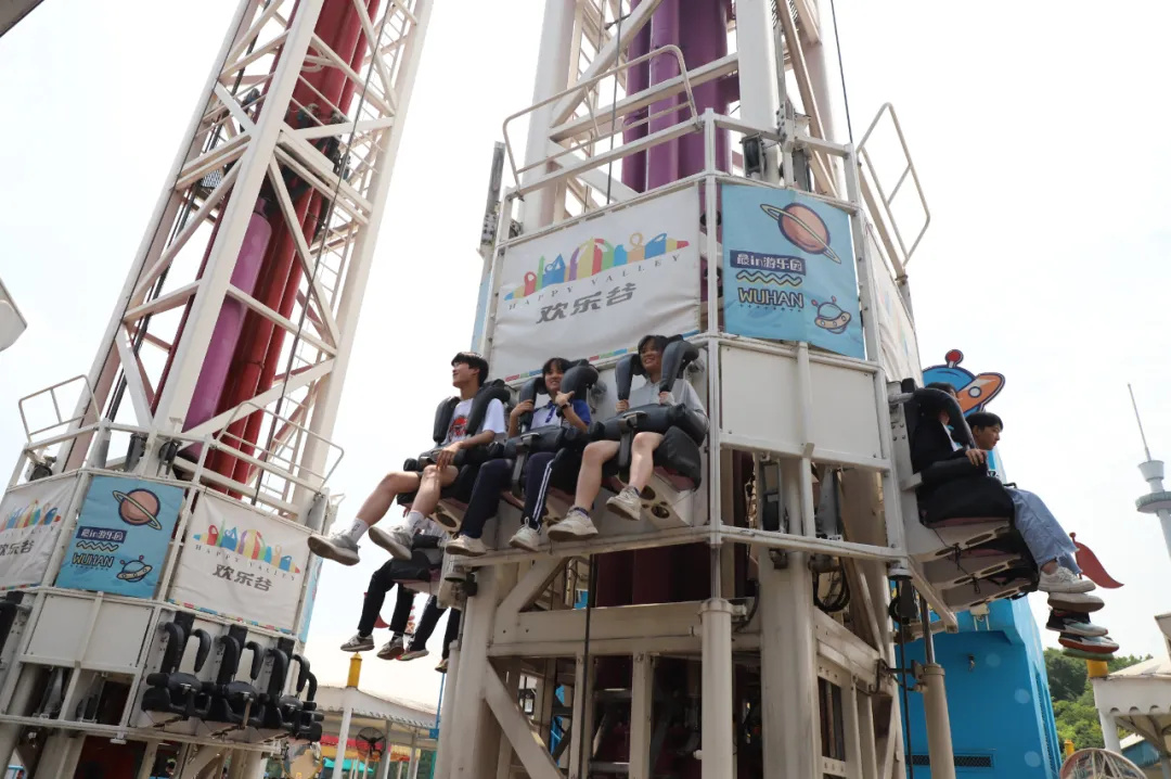次日,学子们在老师和教官的带领下,有序登车前往武汉欢乐谷。抵达目的地后,各自分为8-10人小组,再自行选择项目体验。极速飞车疾驰如风,勇往直前;激流勇进破浪前行,尽显豪情;摩天塔高耸入云,挑战极限……这里,见证了少年们的天真与灿烂,也锻炼了他们的团队协作和自我挑战,还彰显了他们无畏与勇气。
