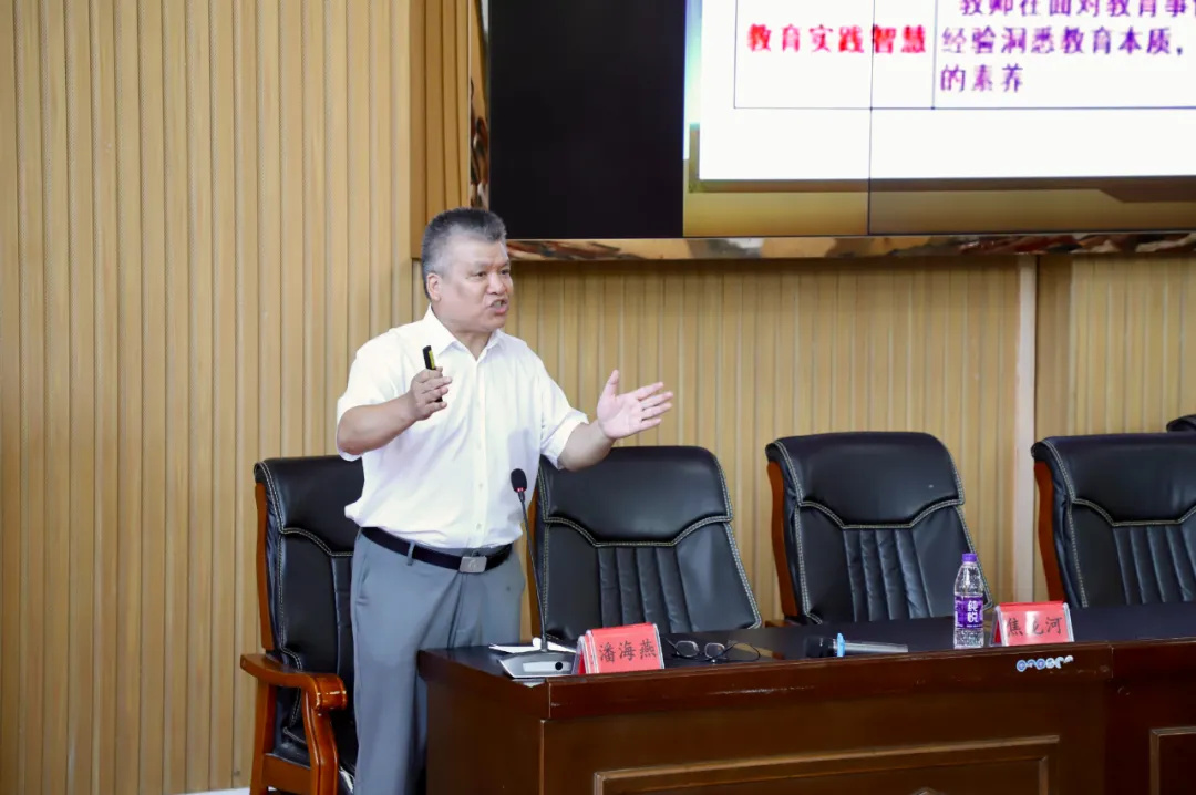 湖北第二师范学院正高级教师潘海燕作题为《主题式校本研修设计与实施》的主题培训。主要内容为:一、“自我经验”及几个相关概念;二、基于“教师自我经验嬗变规律”的几个校本教师发展模式;三、以“促进教师自我经验嬗变”为主题的校本教师发展项目(1314项目)简介,附实践案例;四、反思与展望。