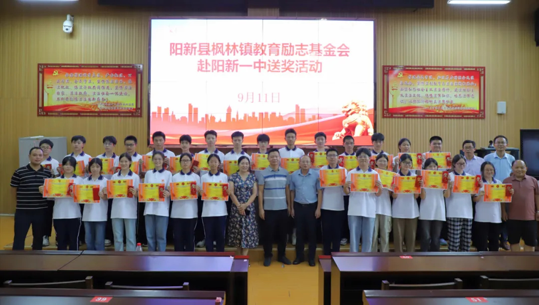 金秋九月,硕果飘香。9月11日,在这个充满希望与收获的季节里,枫林中学领导班子带着枫林镇教育励志基金会的深情厚谊来到阳新一中,为从枫林中学考入阳新一中的2024级优秀学子颁发奖助学金。我校副校长徐美姝出席活动,会议由高一年级负责人李雁鸣主持。