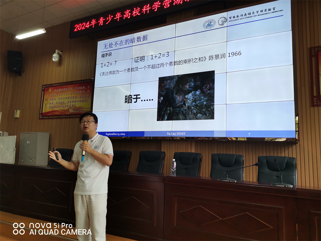 活动邀请到华中科技大学计算机学院副研究员,工学博士、博士后刘渝教授为大家作科普主题报告《点亮暗数据》。刘渝博士向现场学生介绍了什么是暗数据,暗数据的成因,暗数据的鉴别与处理技术等内容。他的报告涉及AI技术的前沿,内容新颖,语言幽默,图文并茂,深入浅出,耐人寻味。他告诉同学们,只要你肯努力,你就可以变得更优秀,期待同学们刻苦学习,考上自己理想的大学,未来掌握过硬本领,攀登科技技术高峰。讲座完成后,他和学生多次互动,让现场学生受益匪浅。