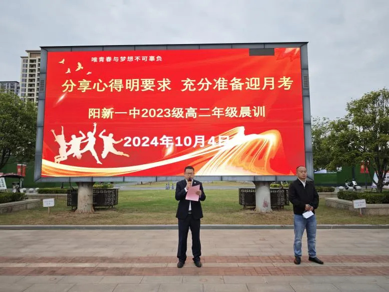 盛年不重来,一日难再晨。为让同学们尽快从国庆假日的放松状态回归常态学习,以昂扬的姿态迎接即将到来的十月联考,2023级高二年级于10月4日早晨6:40分在至美楼广场举行晨训,此次晨训由高二年级主任程志勇主持,年级团队及全体班主任全程陪同。