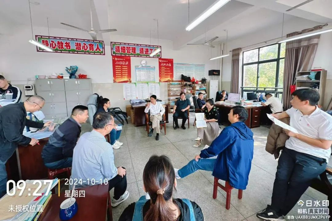 2024年10月10号上午,县教科院柯于涛院长、县教育局基教股陈亚北股长及各学科教研员一行莅临我校视导2025届高三年级一轮复习备考工作。我校党委书记方长风、校长江章令及各蹲组校领导参加视导活动。活动分为视导听评课、常规教学检查、视导情况反馈三个环节。