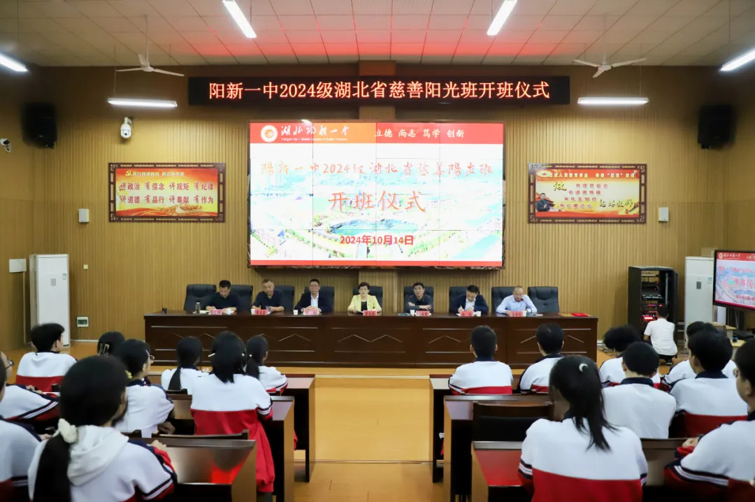 绵雨金涛,云荫焕凉。10月14日,我校在明德楼学术报告厅举行了2024级湖北省慈善阳光班开班仪式。省民政厅二级巡视员、湖北省慈善总会副会长、秘书长彭文洁,项目部副部长徐滔,阳新县二级调研员、县慈善总会会长侯建君,阳新县慈善总会秘书长董美勇,阳新一中党委书记方长风、副校长徐宏斌等领导以及阳光班师生参与本次开班仪式。活动由2024级高一年级负责人李雁鸣主持。