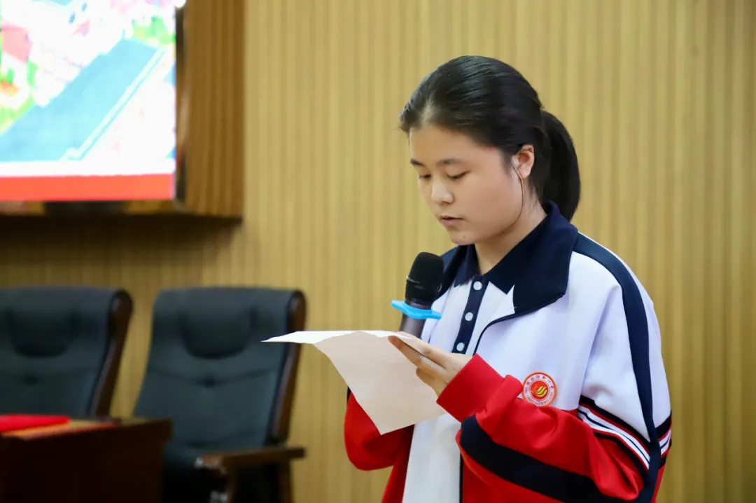 阳光班学生代表佘星月对场上领导和爱心人士的慈善资助表达了深切感恩。她承诺,将倍加珍惜这来之不易的学习机会,努力学习,不断进步,用优异的成绩和实际行动来回报社会的关爱与期望。同时,她也呼吁更多的同学能够珍惜这份资助,心怀感恩,勤奋学习,共同为社会的繁荣与进步贡献自己的力量。