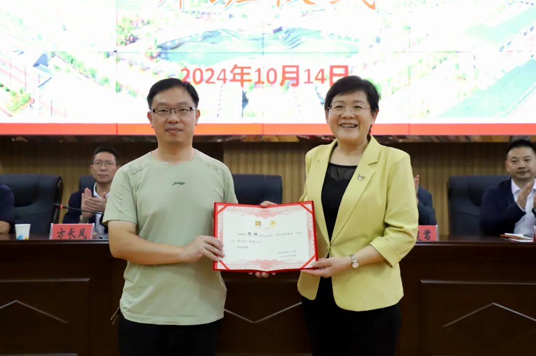 省民政厅二级巡视员、湖北省慈善总会副会长、秘书长彭文洁为阳新一中“阳光班”授牌,为班主任颁发聘书。
