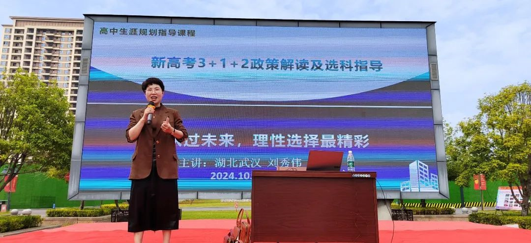 秋风甘雨送清爽,木叶瓜果飘醇香。10月16日下午2点,在至美楼广场举行了2024级高一年级全体家长会。本次家长会由年级支部书记邓丽娟主持,特邀国家生涯规划师、高考志愿填报导师、学业及升学规划督导师、现湖北省重点高中学生成长中心负责人刘秀伟女士为高一家长作学生选科指导,介绍了新高考“3+1+2”政策、选科的重要性、选科失误的风险、新高考带来的变化、高中选科三步法以及选科的建议和原则。
