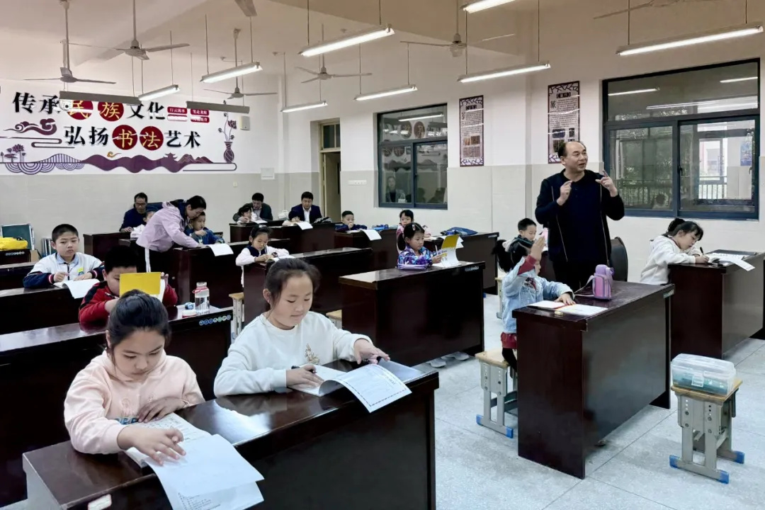 为落实校党委书记方长风在教学工作会议上提出的“德高为师、学高为范,作为一名人民教师应该写得一笔好字,在课堂板书上对学生起到好的示范引领作用!”的要求,教务室本学期特别推出了教师粉笔字课堂及教师亲子书法课堂活动。活动由我校书法教师余秋桦老师主讲。