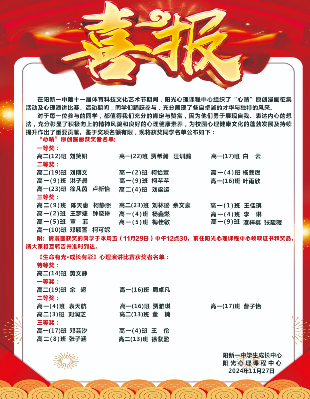 获奖作品将在校园内进行展览,让更多的同学能够欣赏到这些充满创意和正能量的漫画。阳光心理课程中心的负责人表示,举办这样的比赛不仅能够丰富学生的校园生活,还能帮助他们更好地了解和关注心理健康问题。未来,阳新一中将继续开展更多形式多样、内容丰富的心理健康教育活动,为学生的全面发展提供支持和帮助。
