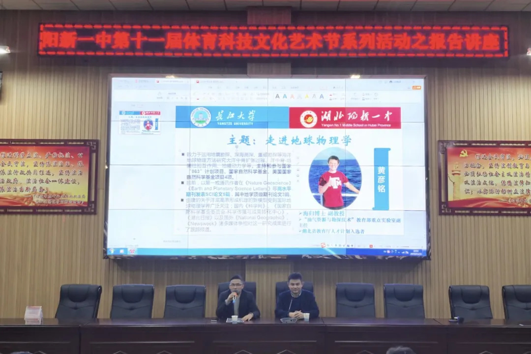11月28日,“油气资源与勘探技术”教育部重点实验室副主任,湖北省教育厅人才计划入选者,长江大学海归博士黄彦铭莅临我校,为师生们带来了一场题为《走进地球物理学》的精彩讲座。我校高一两百多名学生齐聚一堂,共同聆听这场学术盛宴。讲座由年级副主任柯有剑主持。