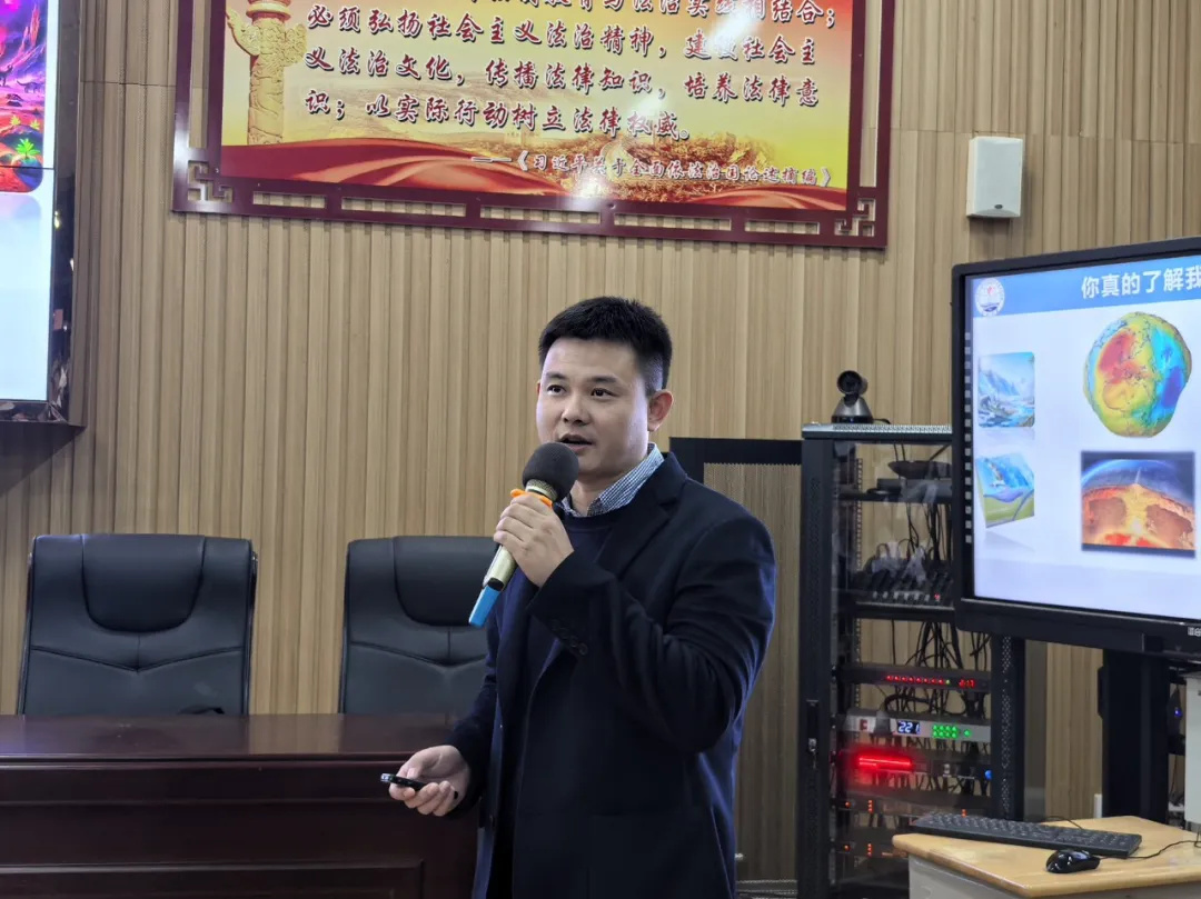 本次讲座,黄教授以“地球物理学”为核心,引领听众踏上了一场探索地球内部的奇妙旅程。首先他带领大家思考一个问题:“你真的了解我们的蓝色家园吗?”以此激发学生的思考以及对相关知识的好奇。接着,李教授详细阐述了地球的起源、形状、内部结构以及地球的“律动”,如地壳、地幔、地核的分层结构,以及板块运动、地幔对流等地球内部活动对地表现象的深远影响。其中,黄教授准备了“宇宙大爆炸”的相关视频,生动地展示了宇宙诞生的壮丽场景,让在场的师生们对宇宙的起源有了更加直观的认识。