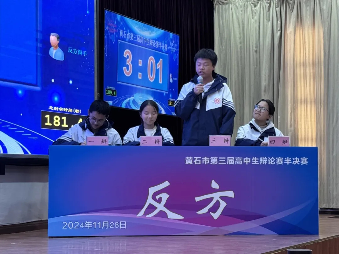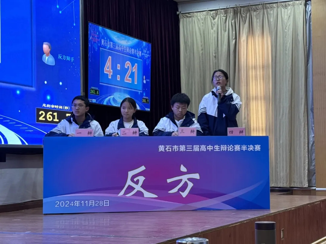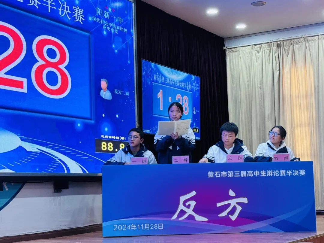 半决赛第一场 ,阳新一中对阵大冶实验高中。在辩论中,阳新一中四位辩手立论有方,攻辩有法,幽默有度,总结有力,最终,获得半决赛的胜利。半决赛第二场 ,黄石二中对阵大冶一中。经过双方辩手唇枪舌剑,最终,黄石二中胜出。在决赛中,阳新一中将对阵黄石二中。