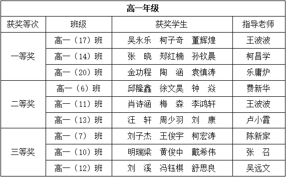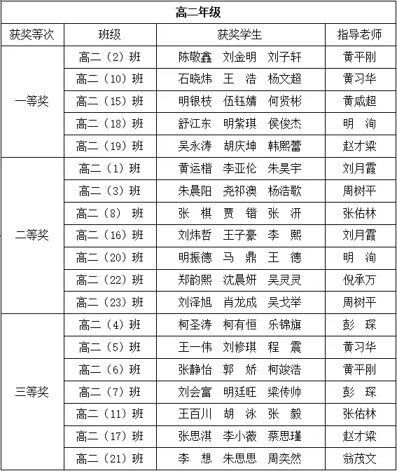 经过评委会评议,阳新一中高一高二年级物理实验操作比赛结果具体如下: