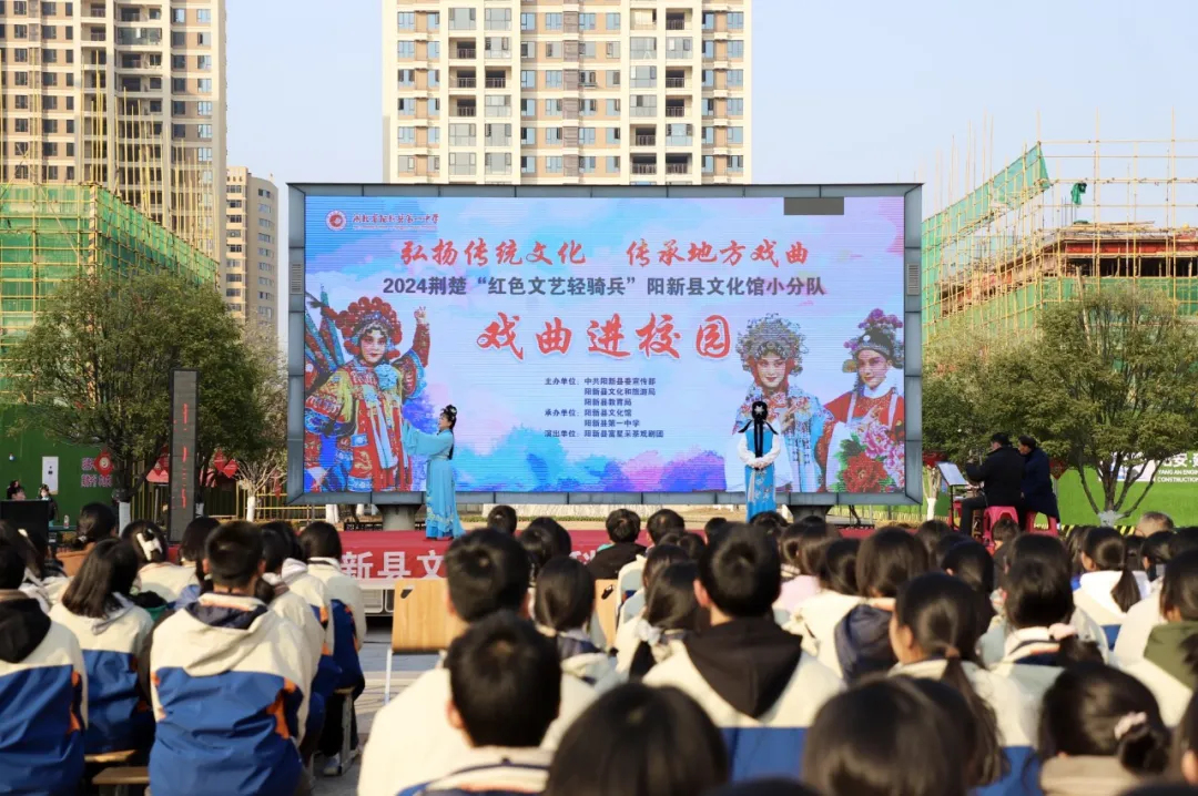 戏曲进校传雅韵,文化育人润心田。为弘扬中华优秀传统文化,推动非物质文化遗产的传承发展,全面提升学生艺术品味和文化修养。12月20日下午,由县委宣传部、县文旅局、县教育局主办,县文化馆和阳新一中承办的戏曲进校园”活动在阳新一中至美楼广场举行,演出单位为阳新县富星采茶戏剧团。阳新一中高一、高二年级部分班级学生观看演出。