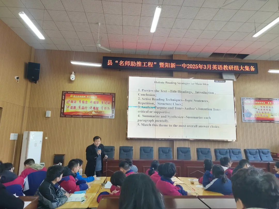 为了进一步巩固我县教学改革成果,助力2025届高三复习备考,3月7日下午,县“名师助推工程”暨阳新一中3月英语教研组大集备在阳新一中明道楼学术报告厅举行。