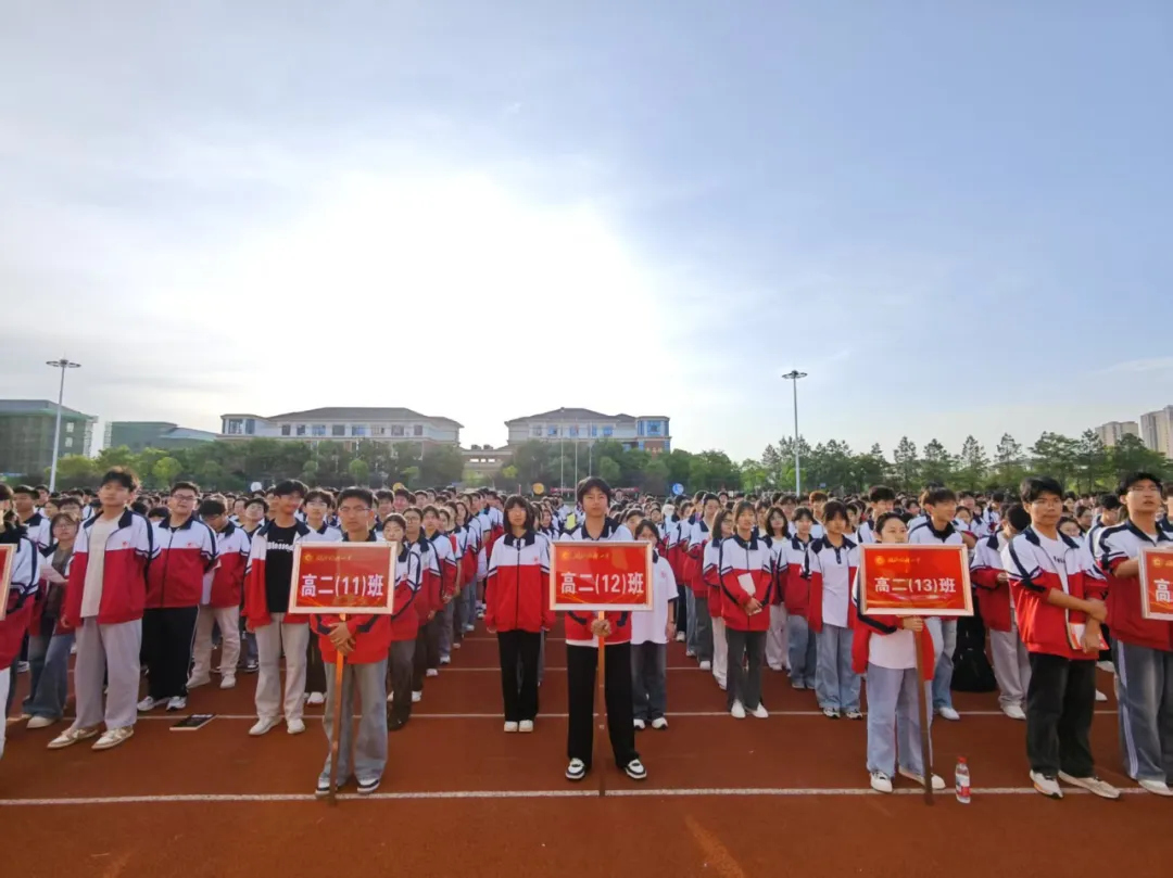 2025年5月10日6:40,高二年级在运动场举行一轮复习备考学生思想动员会,大会由年级主任程志勇主持并作动员发言,校党委委员、副校长刘杰出席会议,高二年级组团队、班主任团队全程陪同。