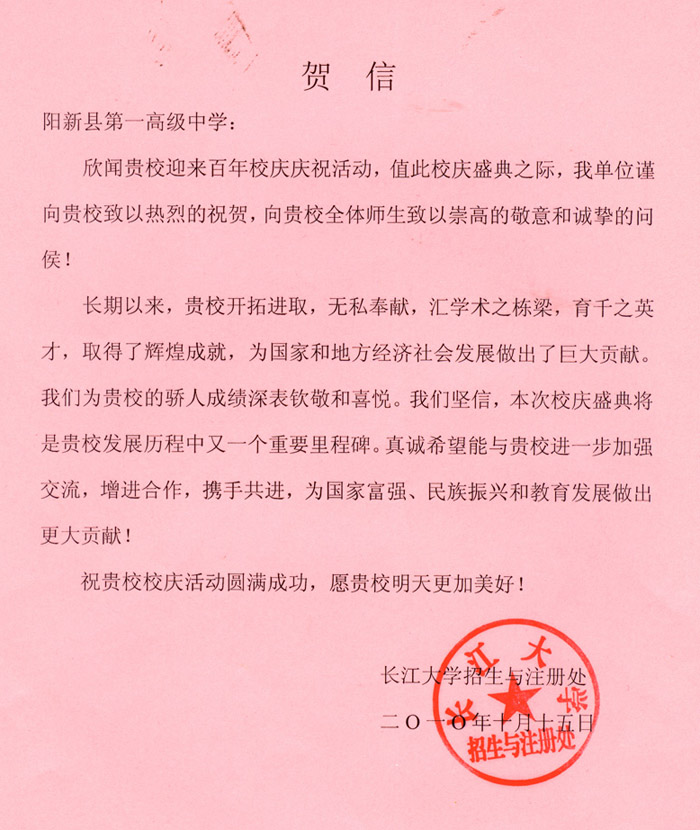 长江大学贺信