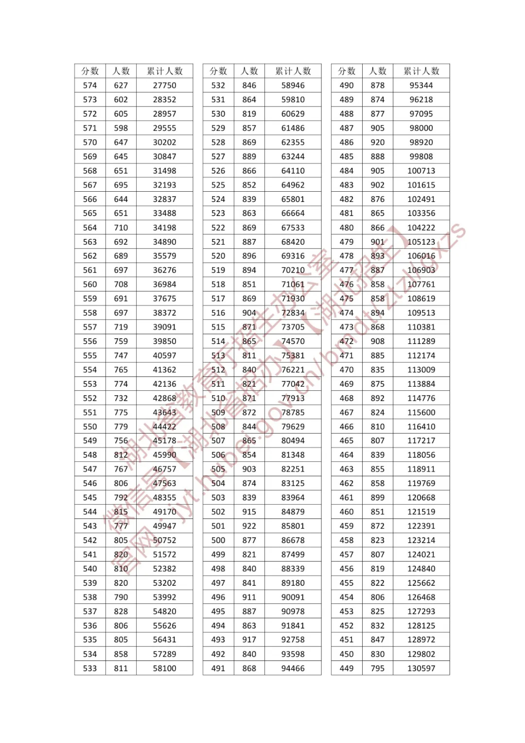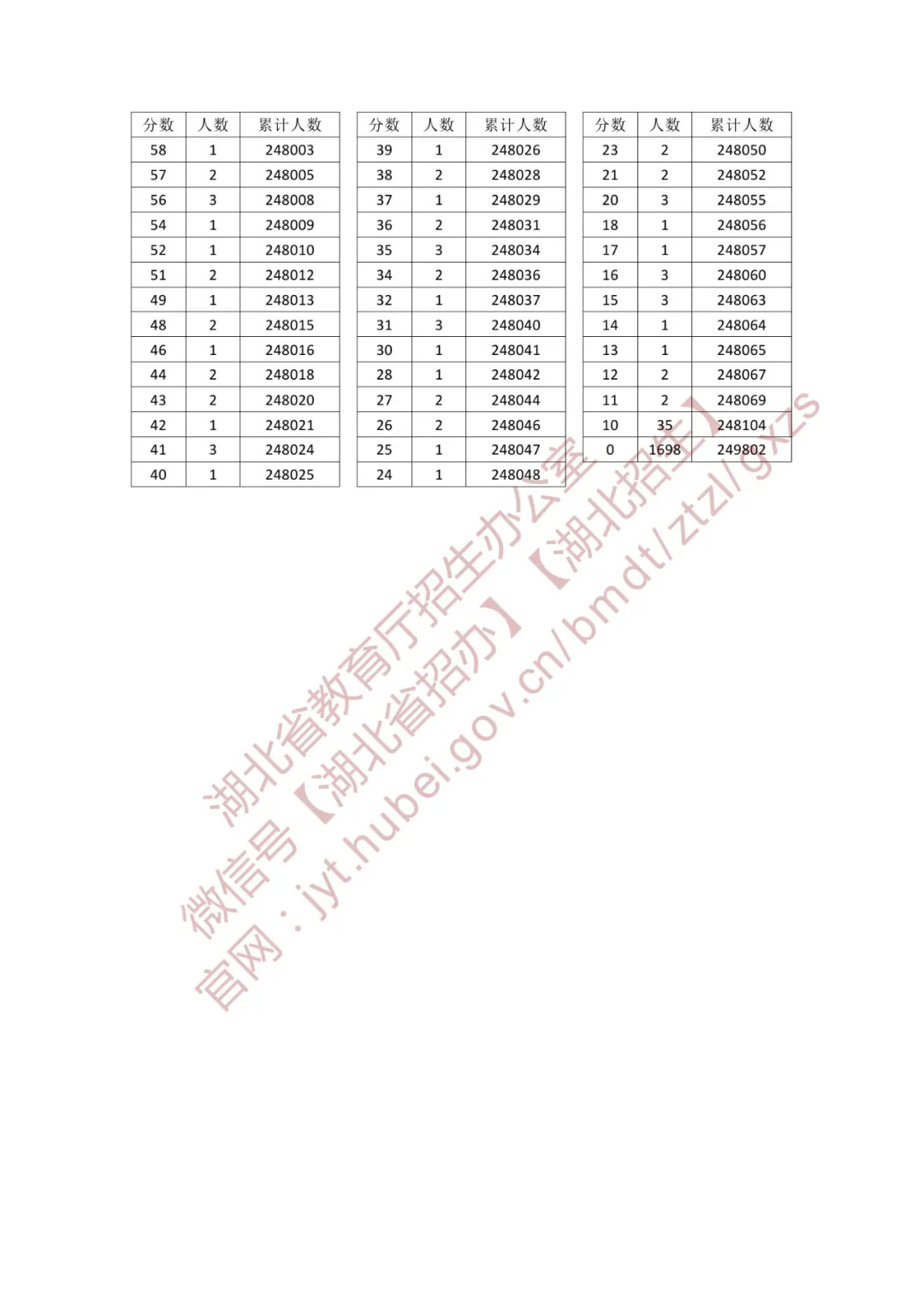 湖北省2025年普通高考总分一分一段统计表(首选物理)