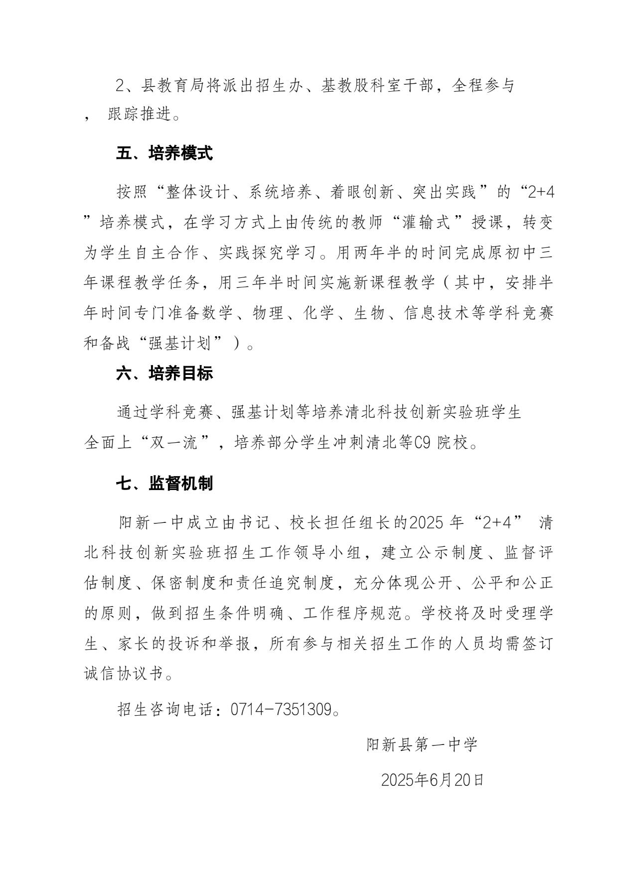 阳新一中2025年“2+4”清北科技创新实验班第二批招生方案