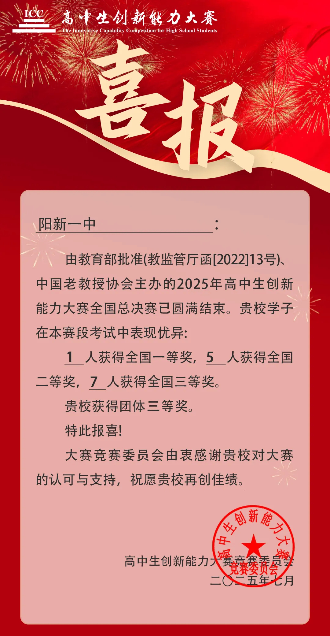 祝贺我校学子在2025年高中生创新能力大赛全国总决赛中取得佳绩!