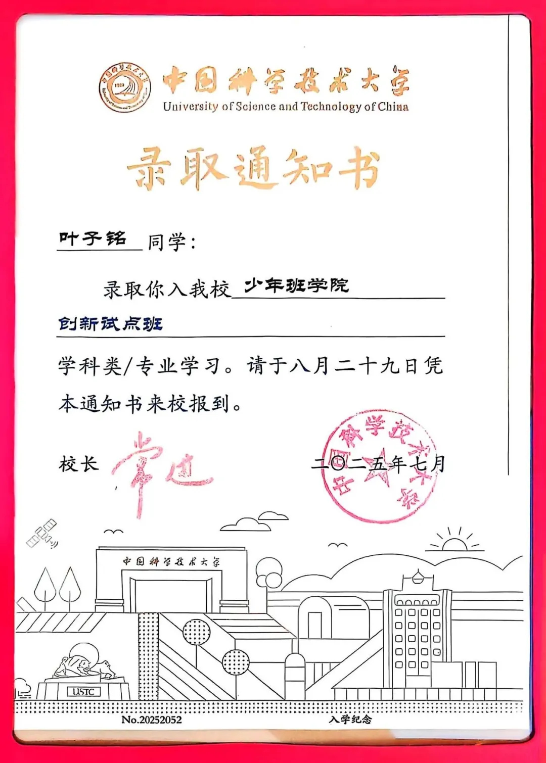 作为高二年级学生,叶子铭年仅16岁,以668分(含加分)的高考成绩通过中科大初试、复试、科学营等严苛选拔,跻身中科大少年创新班,成为阳新县新世纪以来首位少年班学子。