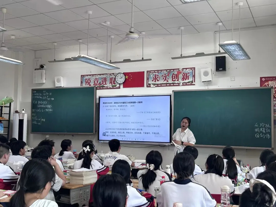 高三语文组邢洁老师围绕“语文作文讲评”这一课题展开授课,校党委委员、副校长刘杰、兄弟学校语文组组长及高三语文组全体老师,针对课堂教学与一轮复习重难点进行深入点评与专业指导。