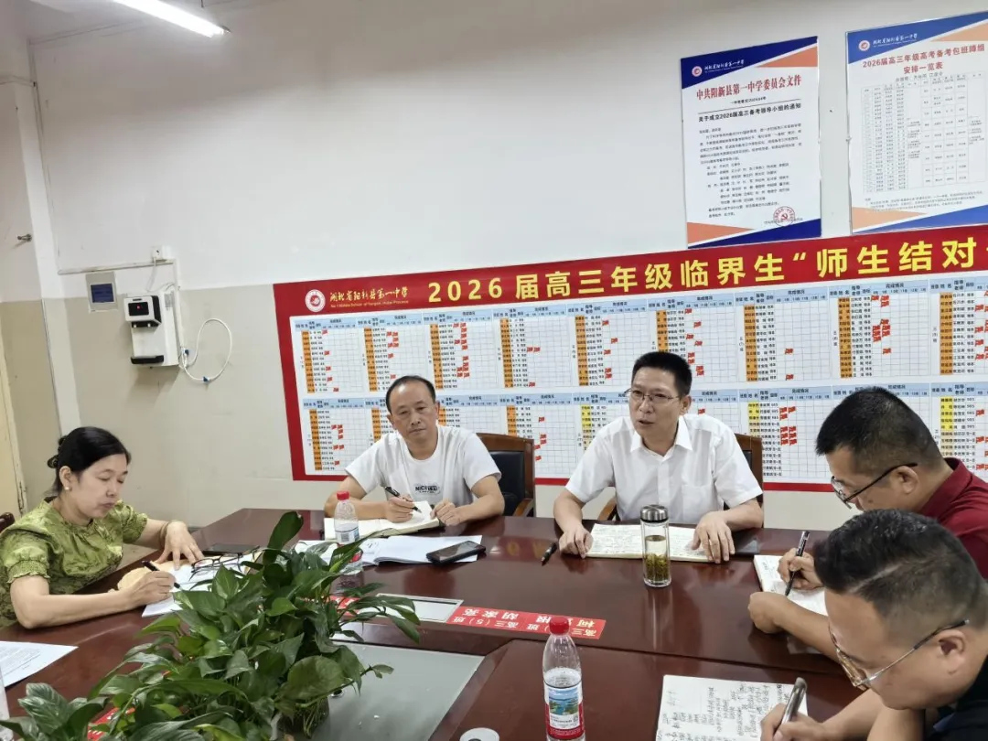 县教科院柯于涛院长作复习备考指导并作四点要求:一要立足9月新起点,找出自身不足,挖掘内在潜力;二要有目标,一中领跑,七所高中学校互学互进;三要把握好时间,做好备考服务保障工作;四要扎实推进培优工作,严格落实奖惩制度,激发备考活力。他强调,所有高中要全力以赴,形成合力,共同完成阳新县2026年高考“1558”的奋斗目标。