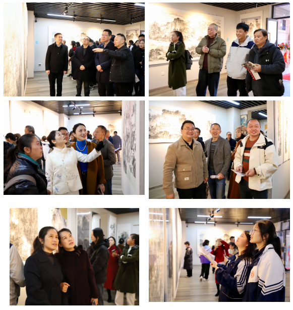 校党委书记方长风宣布“吴山楚水”国画展正式开幕。在热烈的掌声中,嘉宾与师生共同步入展厅,沉浸于水墨丹青所营造的东方意蕴与山水情怀之中。