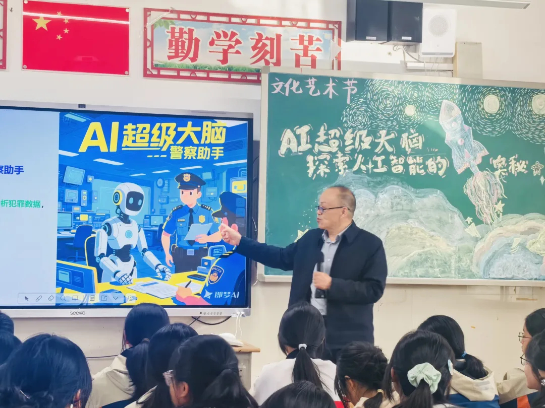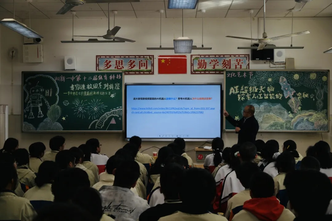征途向新,探索不止。为激发学子创新热情,紧扣时代科技潮流,11月28日下午,华中师范大学廖盛斌教授应邀为高三学子开展以“AI超级大脑——探索人工智能的奥秘”为主题的科普讲座。教室内座无虚席,氛围热烈,阵阵掌声中,科技探索的种子悄然在学子心中扎根。