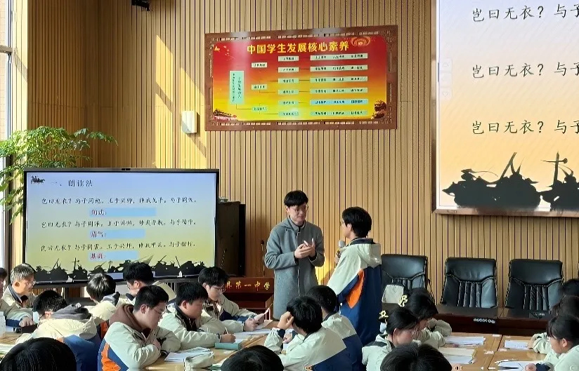 华师一附中语文教学名师宋时雨老师以《<无衣>读法辨析》为题,为学生们呈现了一节生动的公开课。宋老师创造性地将朗读、通读、诵读、细读、助读五种方法有机融合,使文本的内在“矛盾”转化为学习的突破口,诠释了语文教学从“知识传授”走向“思维建构”,引导学生穿越字句的表层,驶向深度思辨的广阔海洋。