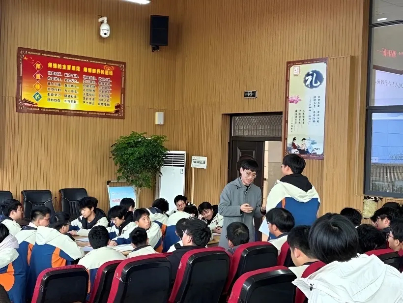 宋老师与学生亲切交流,结合多年教学心得,推荐了涵盖文史哲领域的拓展书目,并针对学生们在文言积累、作文立意、复习规划等方面的具体困惑给予了细致解答。