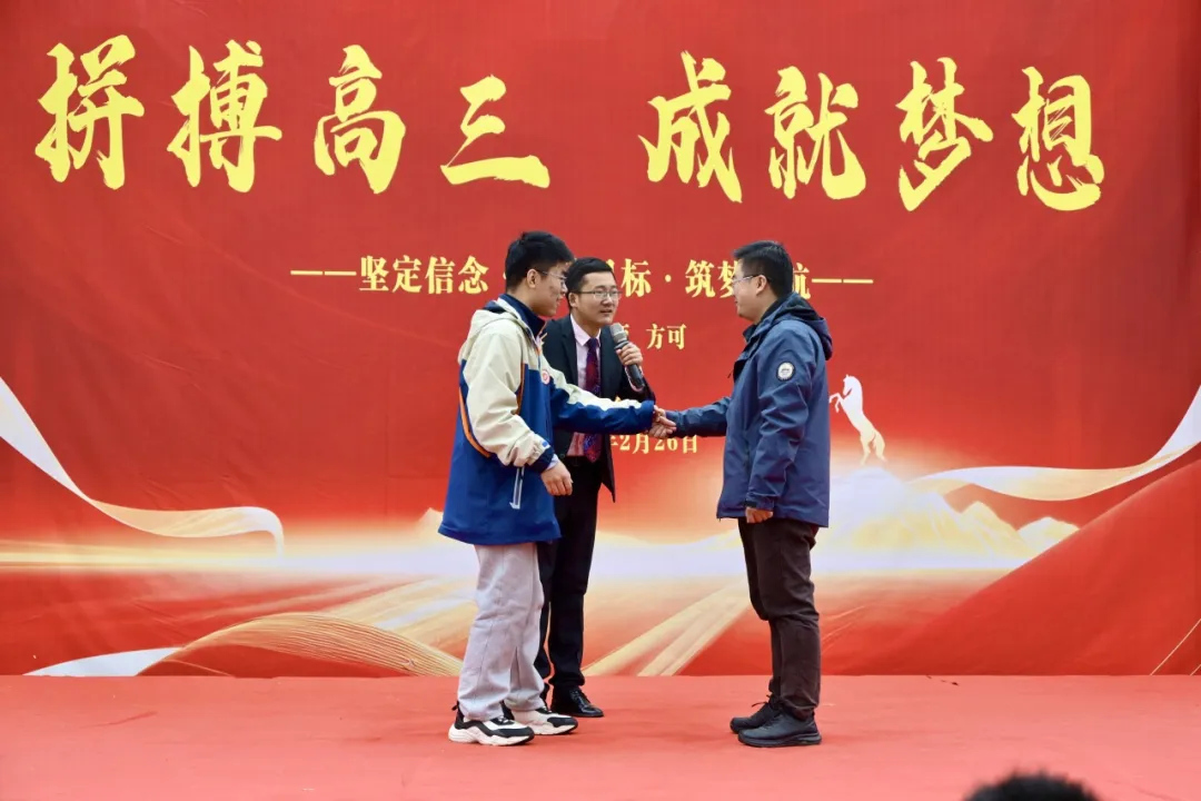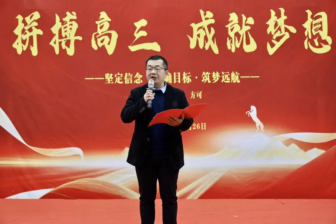 春风化雨育桃李,万物复苏谱新篇。为激发高三学子冲刺高考的斗志,点燃决胜未来的激情。2月26日9时28分,我校2026届高三年级在校体育馆举行高考百日冲刺励志演讲会。校党委书记方长风,校党委副书记、校长江章令及校党委班子成员为高三学子加油鼓劲。此次大会由校党委委员、副校长刘杰主持。