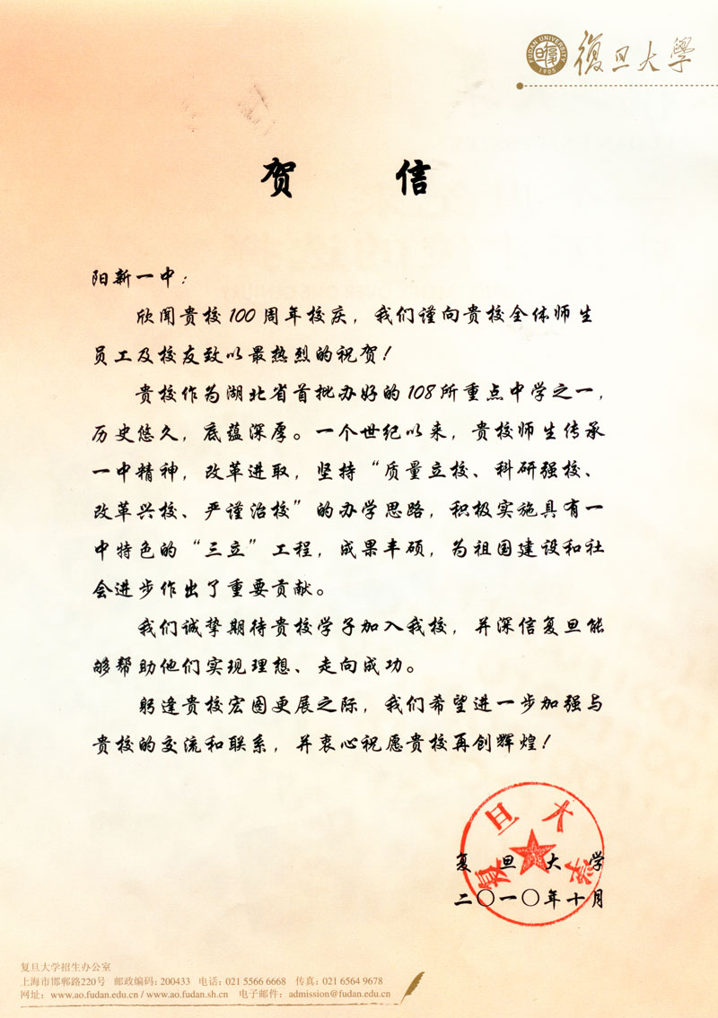 复旦大学贺信
