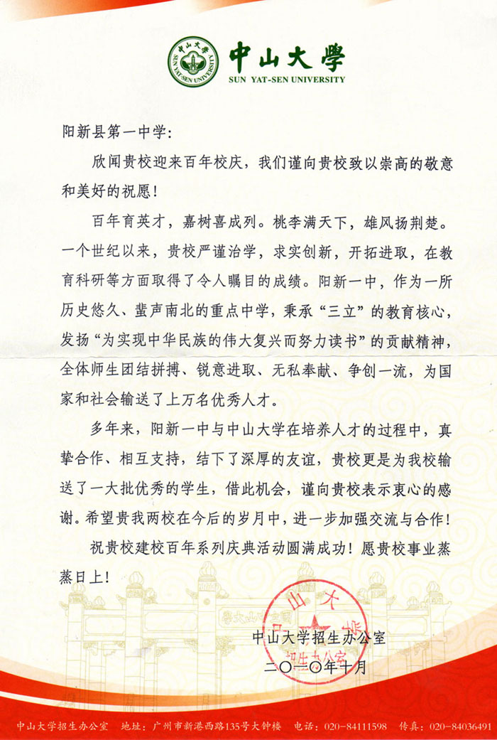 中山大学贺信
