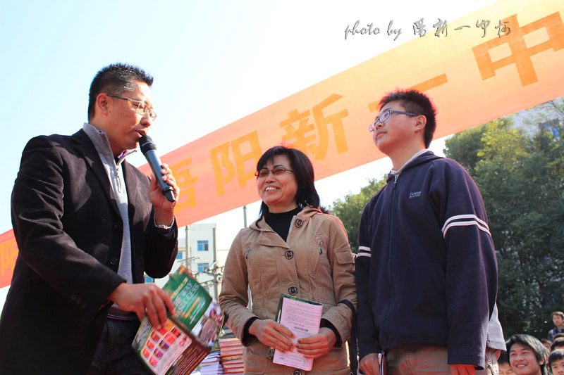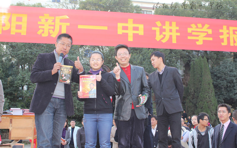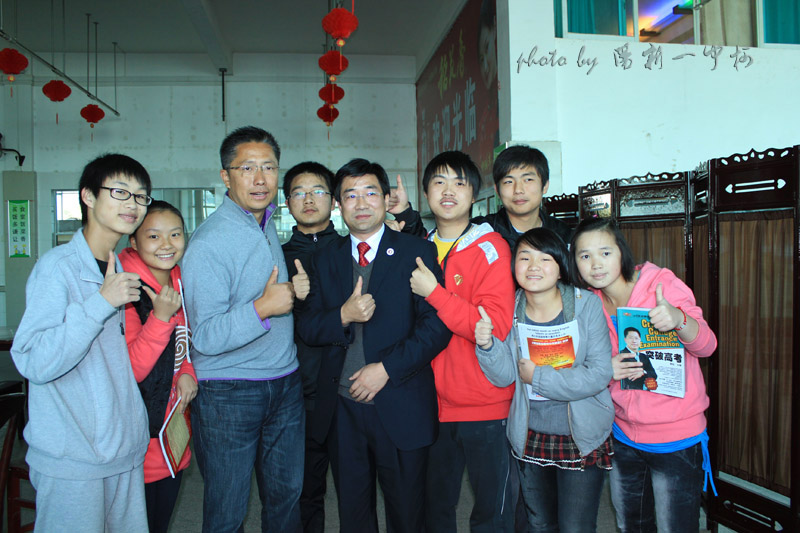 跟李阳老师和一中副校长一起合影 |