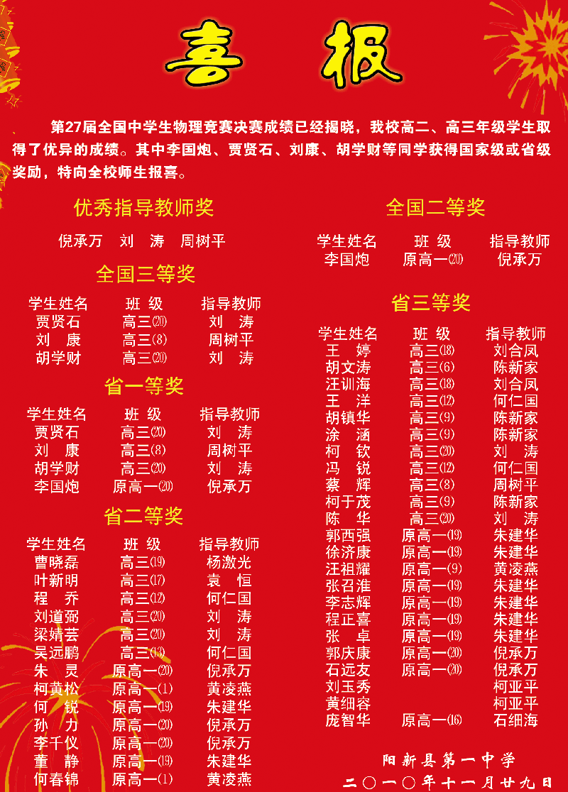 2010年全国物理竞赛喜报