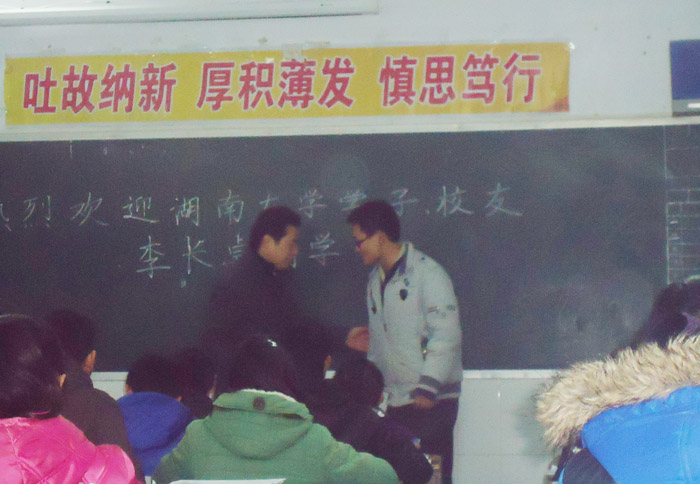 李长卓,于2010年阳新一中毕业考入湖南大学。2月13日,趁回大学学习之前赶来母校,为在校学弟学妹做学法指导报告。