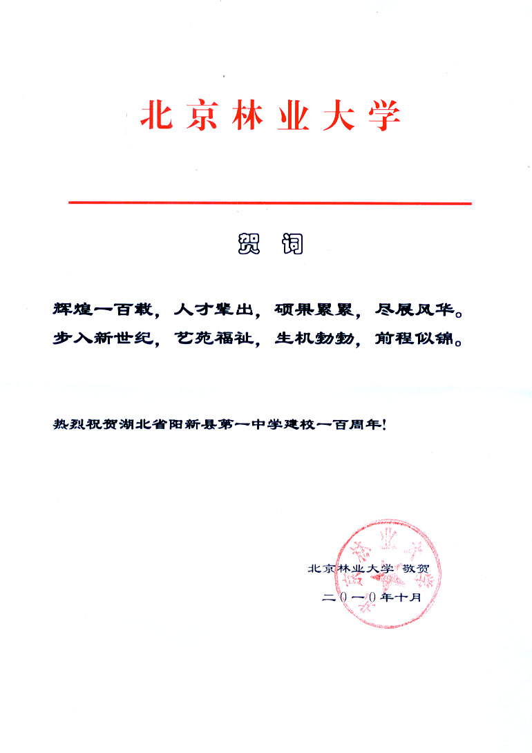 北京林业大学贺信(百年校庆祝贺续传)