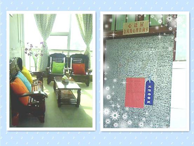 1、心理咨询室是学生释放压力、缓解情绪、消除困惑的地方,我们将之称为心语屋,意为敞开心灵诉说心事的小屋。