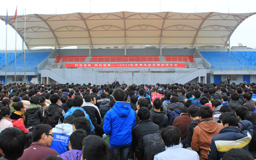 最后,郑子岳先生为高三学生送上三句话,一句新东方校训:“从绝望中寻找希望,人生终将辉煌”。一句阿里巴巴网站总裁马云说的:“今天很残酷,明天更残酷,后天很美好,但绝对大部分死在明天晚上,所以每个人不要放弃今天”。另一句清华大学校训:“自强不息,厚德载物”。临别,他真情地向高三学生发出邀请:“相约北京,不见不散”。