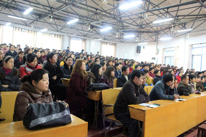 郑子岳老师为家长作专题报告 家庭教育报告会在学校一楼阶梯教室举行 家庭教育报告会现场 家庭教育报告会现场