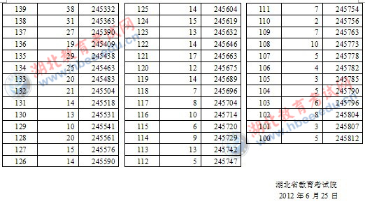 2012年湖北省高考一分一段统计表(理工类)