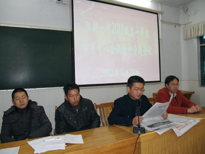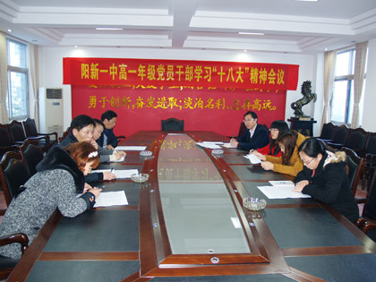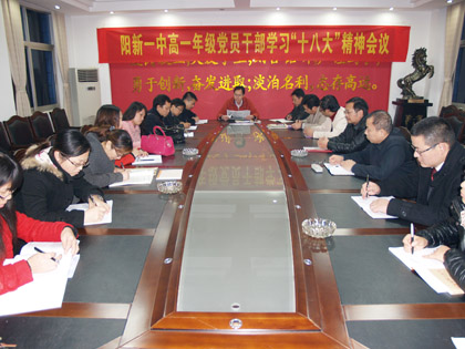 11月19日至11月30日,阳新一中高一年级组采取多种形式学习党的“十八大”精神,并结合教学工作实际,努力领会和实践“十八大”精神。