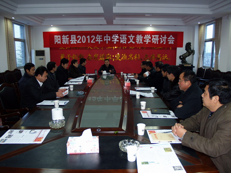 阳新县中语会各位理事,共计30余名领导、专家冒雨参加阳新一中承办的阳新县2012年中学语文教学研讨会。研讨会由阳新县教研室主任、阳新县中语会秘书长胡家朗主持。大会分为三项议程:一是与会领导、专家深入阳新一中课堂听课,二是与会领导、专家就听课内容展开语文研讨,三是召开阳新县中语会年会。